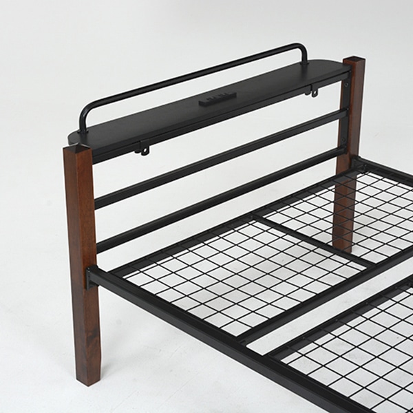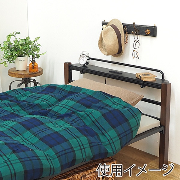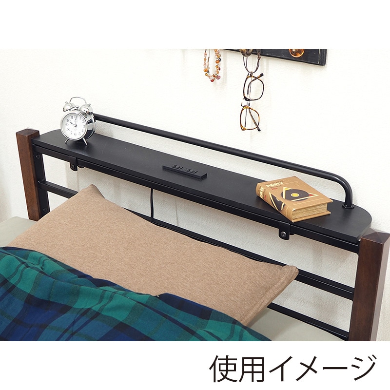 萩原 パイプベッド 宮棚付 シングル ブラウンブラック KH-3087BK-MS 1台(ご注文単位1台)【直送品】
