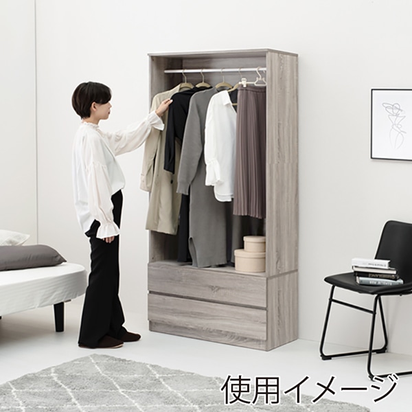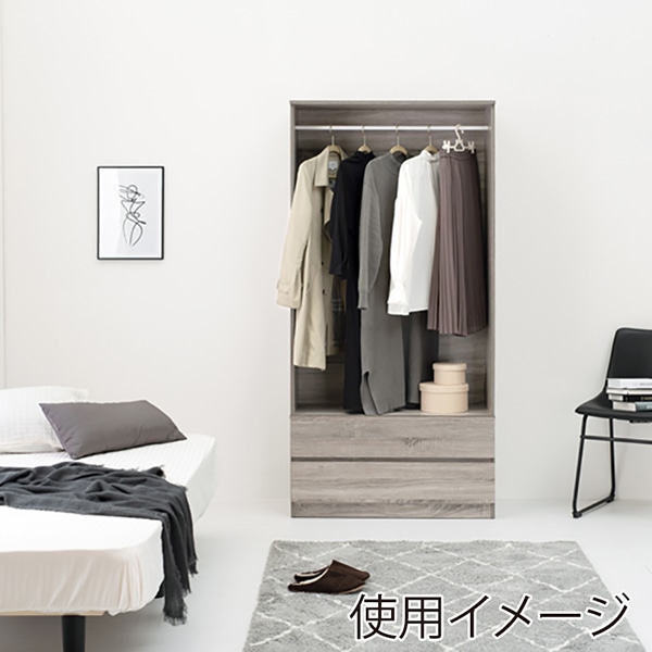 萩原 ワードローブ 引き出し付 幅89cm グレー RKK-1622GY 1台(ご注文単位1台)【直送品】