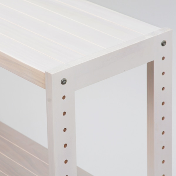 - 棚の高さを自由に調節できる天然木のオープンラックです。棚板は3.3cm間隔の可動棚なので、置くものに合わせて細かい調整が可能です。厚みのある棚板と横揺れを防ぐクロスバーで耐久性にも優れています。※プラスドライバーご用意ください。●耐荷重:1段20kg●組立式