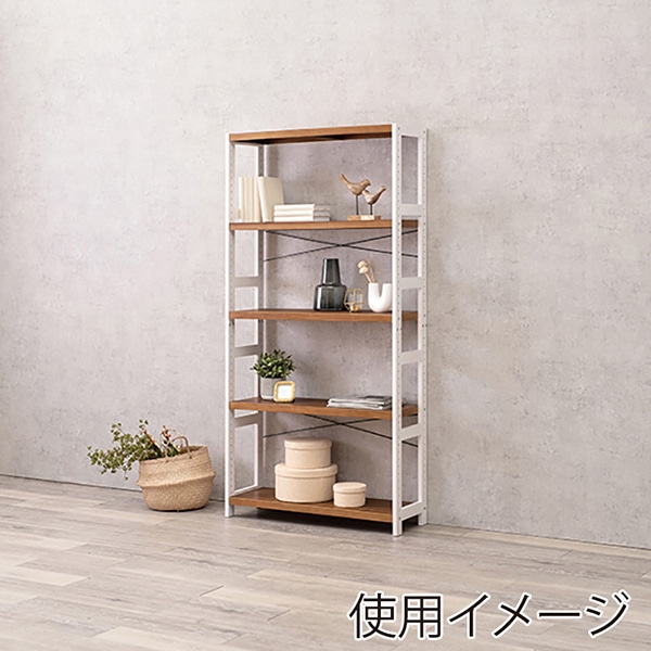萩原 木製ラック 幅40cm 5段 ホワイトウォッシュ×ライトブラウン MCC-6038WSLB 1台(ご注文単位1台)【直送品】