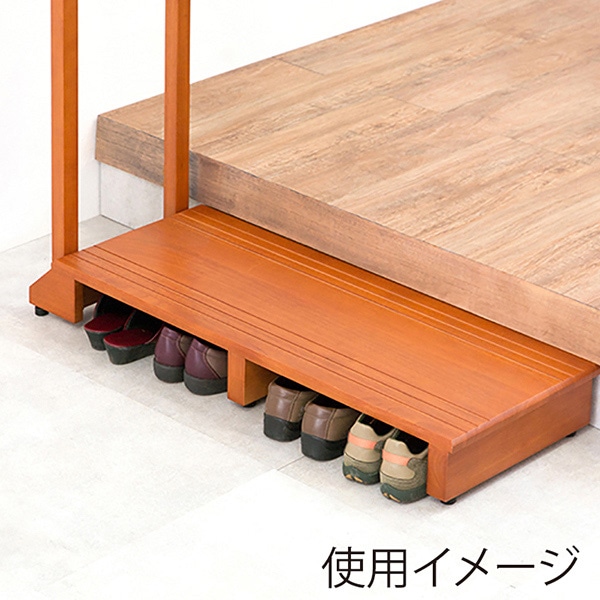 萩原 手すり付き玄関踏み台 片側手すり ワイド VH-7934LBR-W 1台(ご注文単位1台)【直送品】