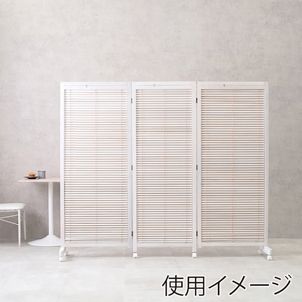 萩原 ルーバーパーテーション 高さ165cm 3連 キャスター付 ホワイトウォッシュ MS-8113WS 1台(ご注文単位1台)【直送品】