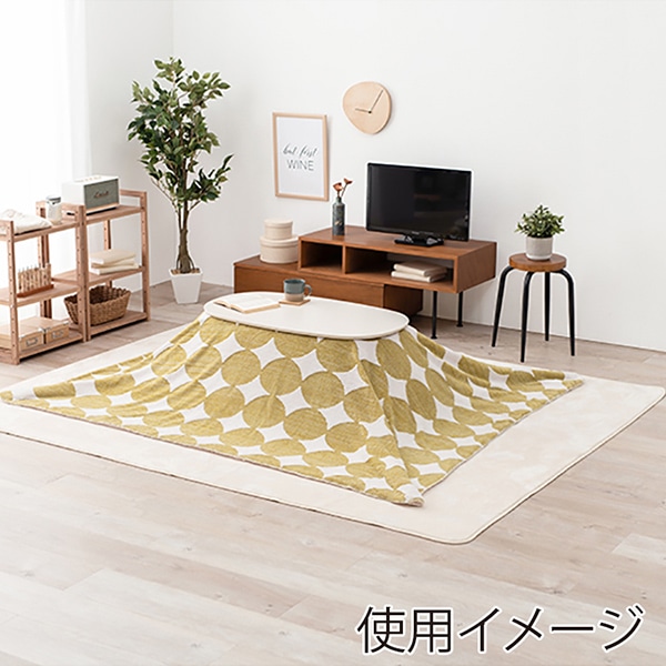 おしゃれな楕円形の 折りたたみ こたつテーブルと、ふんわりとした北欧柄生地のかさばらない中綿なし掛け布団のセットです。すっきりスタイリッシュなデザイン。折れ脚タイプなので収納するときも省スペースです。掛け布団は表面はシャガードボア、肌が触れる裏面はプードルボアの2重構造で、非常になめらかで極上の肌触りです。●テーブル色:ホワイトウォッシュ●布団色:グリーン●折れ脚●天板固定ネジ付●掛ふとん:約210×170cm●ヒーター:MS-200H 石英管ヒーター(中間スイッチ)●ふとん側地:ポリエステル100%