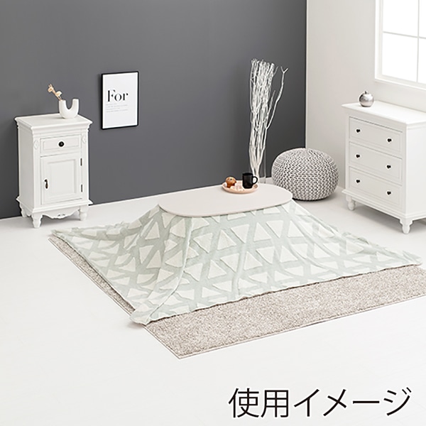 萩原 カルミナ折りたたみ楕円形こたつ うす掛け布団セット 三角柄 ホワイトウォッシュ×グレー カルミナ950WS+スノウ950TGY 1セット(ご注文単位1セット)【直送品】