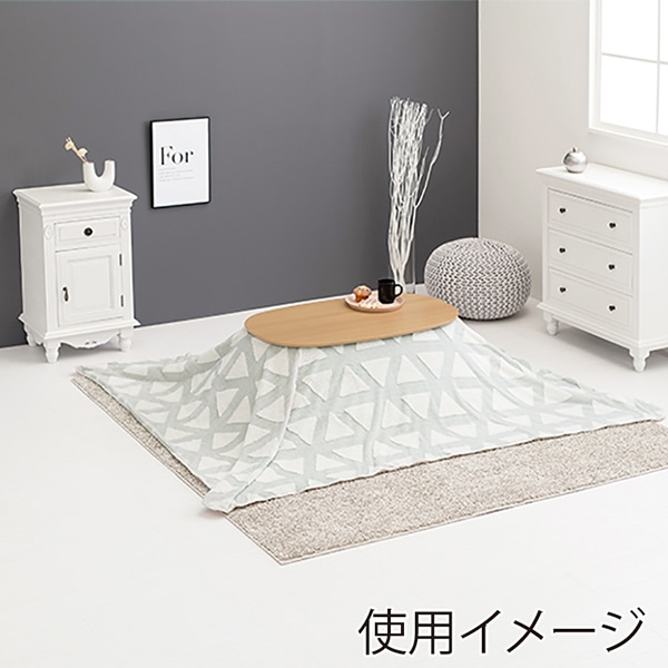 萩原 カルミナ折りたたみ楕円形こたつ うす掛け布団セット 三角柄 ナチュラル×グレー カルミナ950NA+スノウ950TGY 1セット(ご注文単位1セット)【直送品】