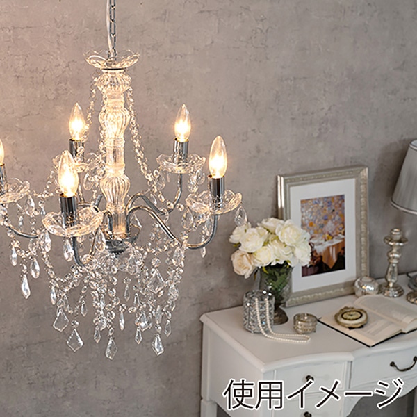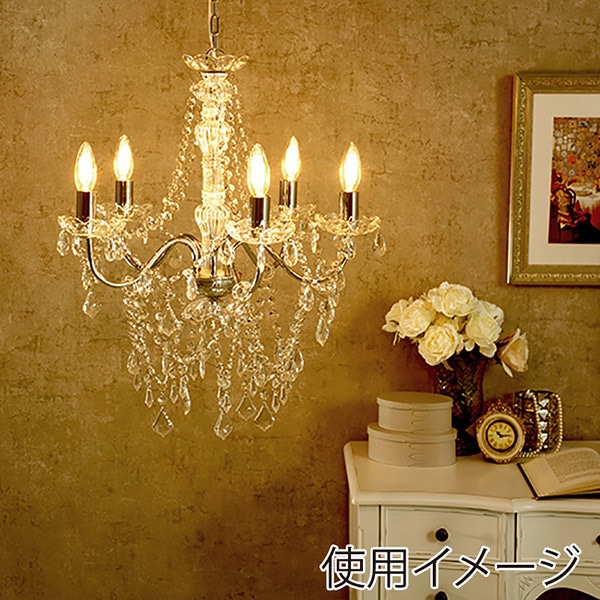 - 美しいデザインと細やかなカットを施したパーツにより、お部屋がエレガントな空間に変わります。設置が簡単で、電球付きなのですぐに使用可能です。●組立式●シャンデリア球(E17/40W)×5個付●サイズ:約幅51.5×奥行51.5×高さ59cm (ソケット部+チェーン長さ:43cm)