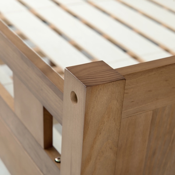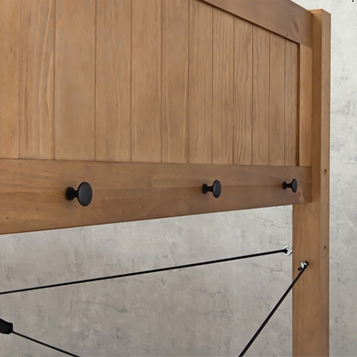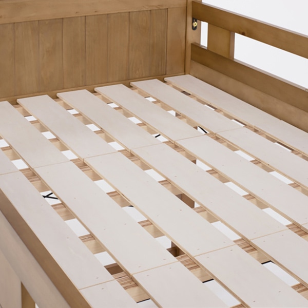 - 天然木パイン材を贅沢に使用した、おしゃれな北欧風木製ロフトベッド。ベッド下は140cmあるので大容量の収納スペース。かさばるものを収納でき、賃貸やアパート、マンション、一人部屋などの収納不足も解消します。耐荷重350kgの頑丈タイプなので大人でも安心。便利な2口コンセント付き宮棚と、コートや洋服をかけられるフック付き。ハシゴの位置は4方向に変えられるのでお部屋に合わせて設置可能。お手持ちの敷き布団が使えるのでマットレスを買い足す必要もありません。※仕様に合ったサイズのマイナスドライバーとプラスドライバーをご用意ください。●床面サイズ:幅97×長さ197cm●2口コンセント付●組立式