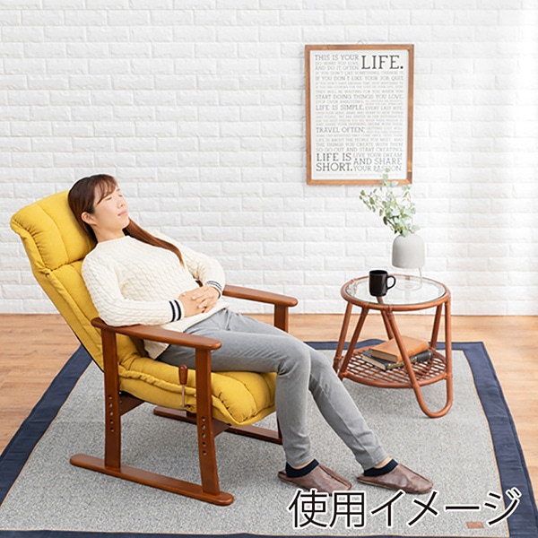 萩原 リクライニング高座椅子 ヘッドレスト付 ディープイエロー LZ-4378DYE 1台(ご注文単位1台)【直送品】