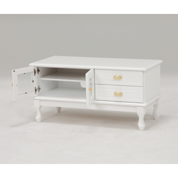 - 猫脚とリボンモチーフの取っ手がお洒落で可愛いテレビ台です。扉内に配線コード用の穴付き。背面化粧仕上げ。※プラスドライバーをご用意ください。●脚部組立式