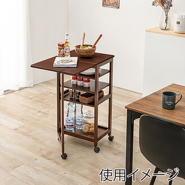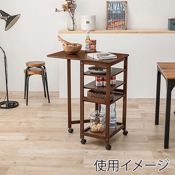 萩原 バタフライキッチンワゴン 可動棚×3枚 ブラウン VW-7985BR 1台(ご注文単位1台)【直送品】