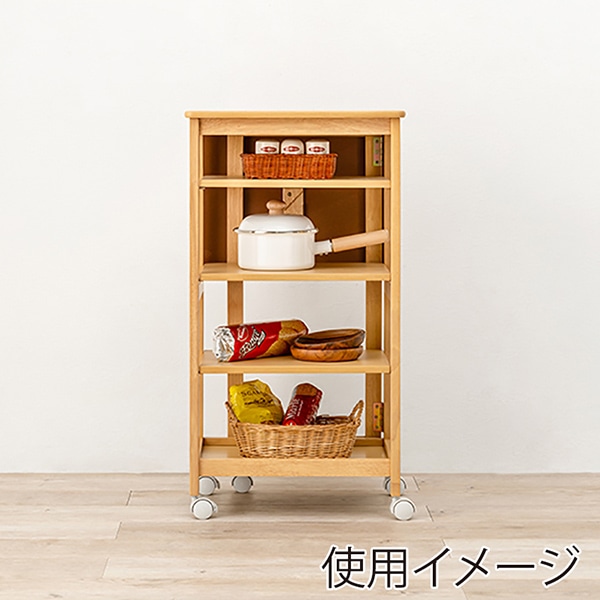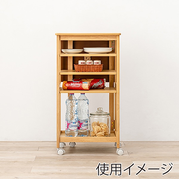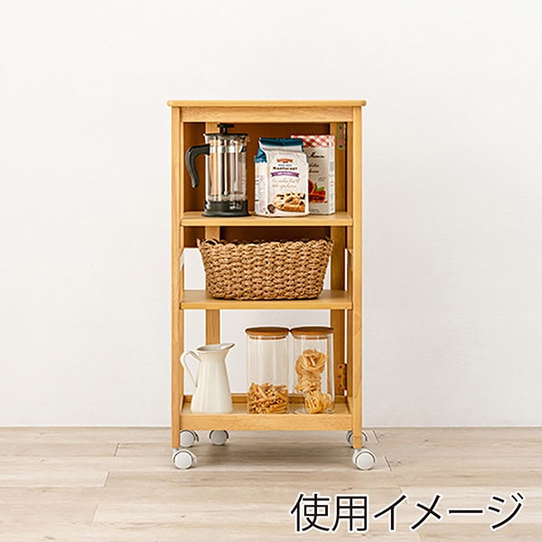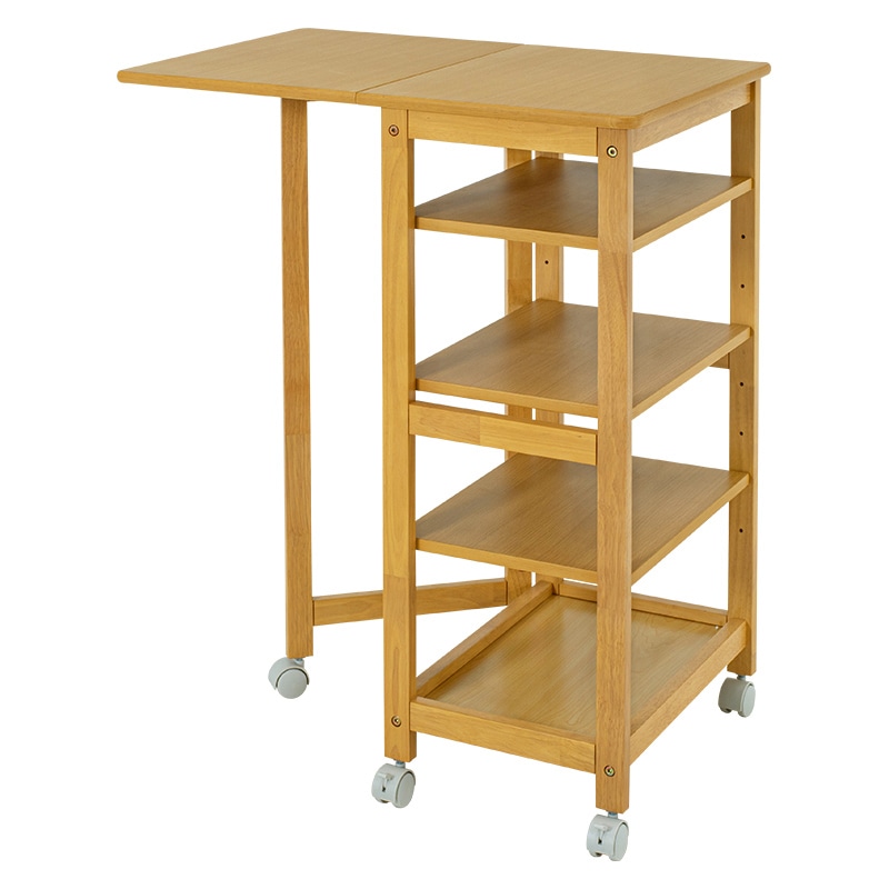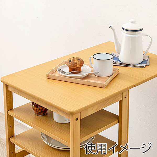 萩原 バタフライキッチンワゴン 可動棚×3枚 ナチュラル VW-7985NA 1台(ご注文単位1台)【直送品】