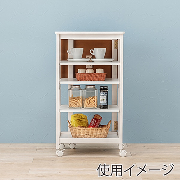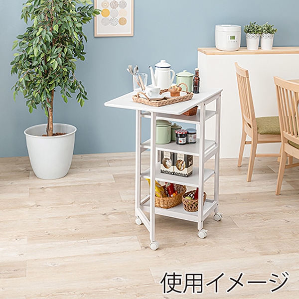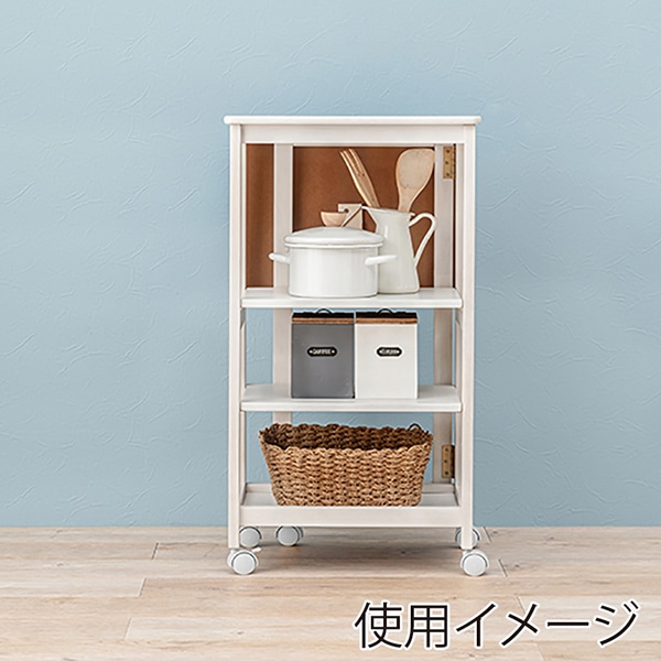 萩原 バタフライキッチンワゴン 可動棚×3枚 ホワイトウォッシュ VW-7985WS 1台(ご注文単位1台)【直送品】