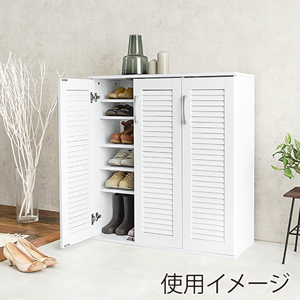 萩原 ルーバー扉シューズラック 幅89cm ホワイト RSR-1701WH 1台(ご注文単位1台)【直送品】
