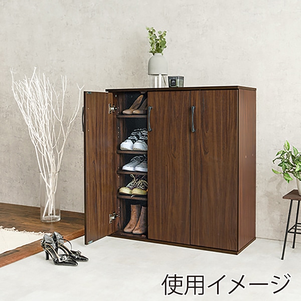 萩原 フラット扉シューズラック 幅89cm ブラウン RSR-1703BR 1台(ご注文単位1台)【直送品】