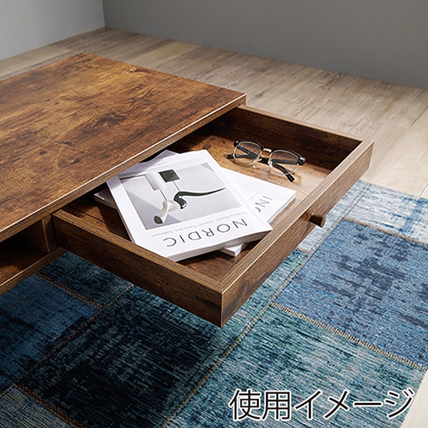 萩原 ローテーブル 引出し付 100×45cm ブラウン MT-6476BR 1台(ご注文単位1台)【直送品】
