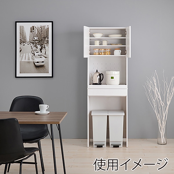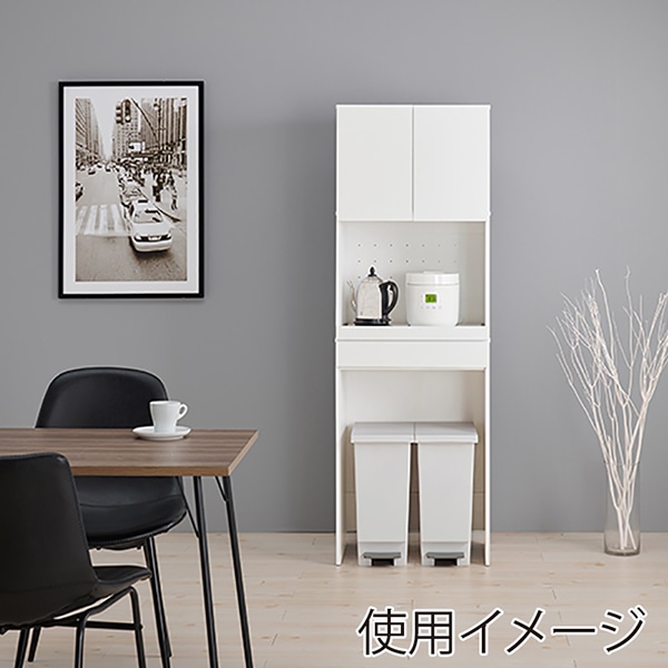 萩原 キッチンラック 幅58cm 3段扉付きタイプ ホワイトウォッシュ RCC-1630WS-BS 1台(ご注文単位1台)【直送品】