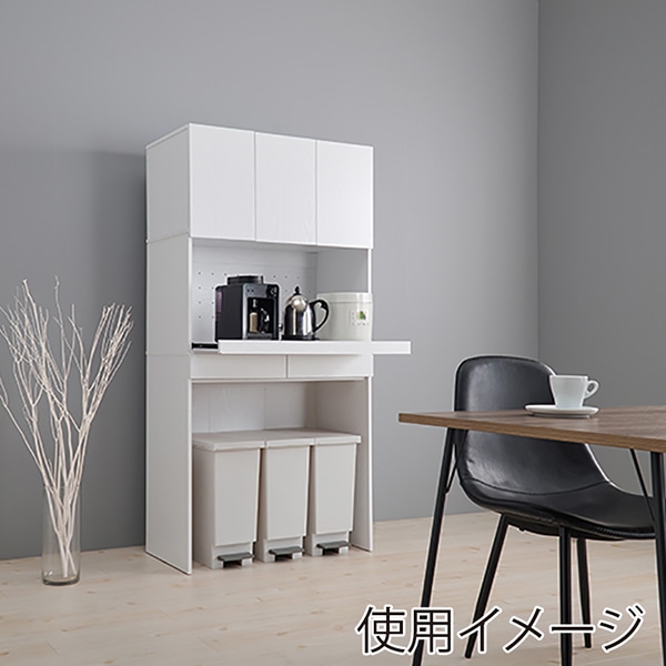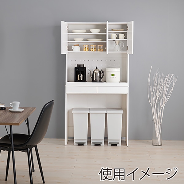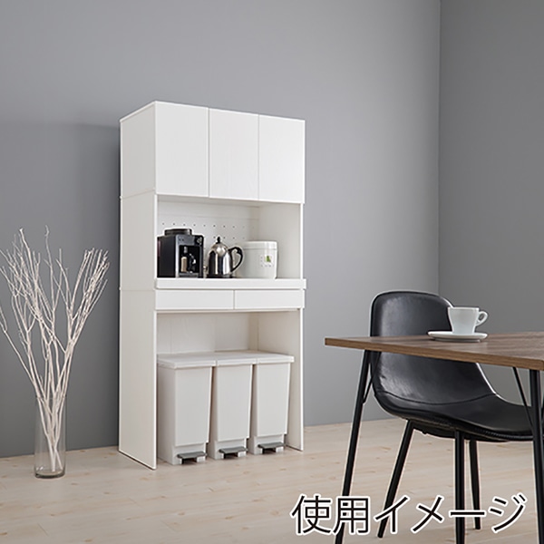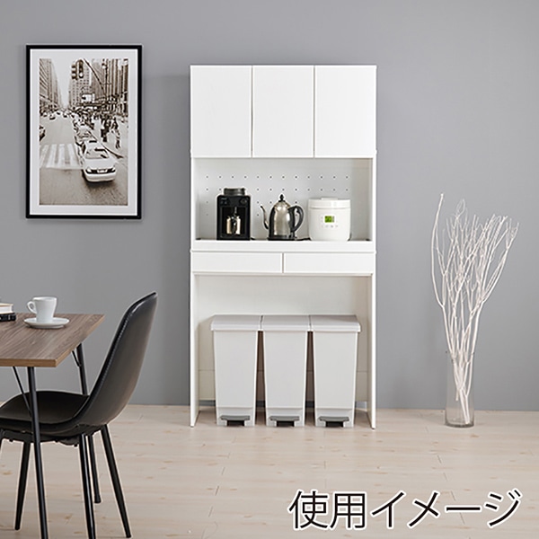 萩原 キッチンラック 幅88cm 3段扉付きタイプ ホワイトウォッシュ RCC-1633WS-BS 1台(ご注文単位1台)【直送品】