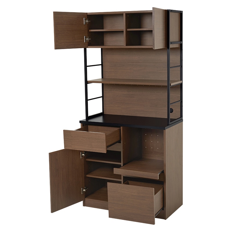 萩原 キッチンラック 大容量収納タイプ ブラック×ブラウン RCC-1629BR 1台(ご注文単位1台)【直送品】