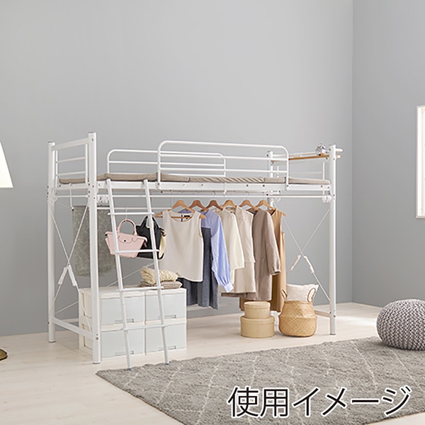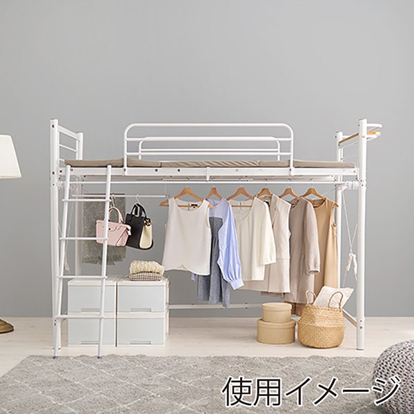 萩原 カーテンが取り付けられるロフトベッド 高さ159cm ホワイト KH-3791WH 1台(ご注文単位1台)【直送品】