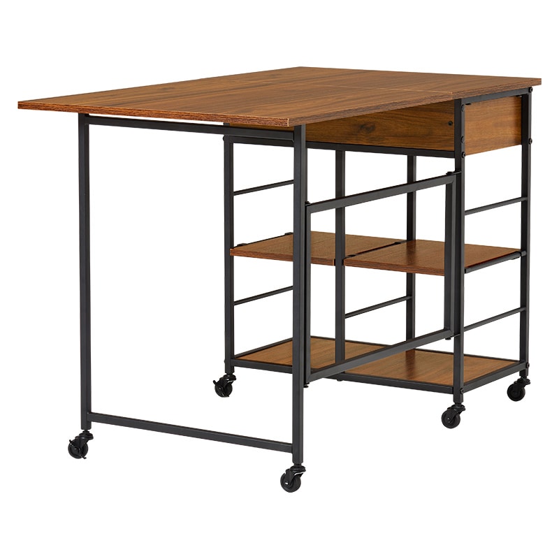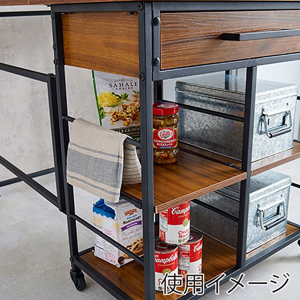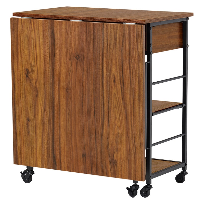 萩原 バタフライキッチンワゴン 引出付 ブラウン LW-4531BR 1台(ご注文単位1台)【直送品】