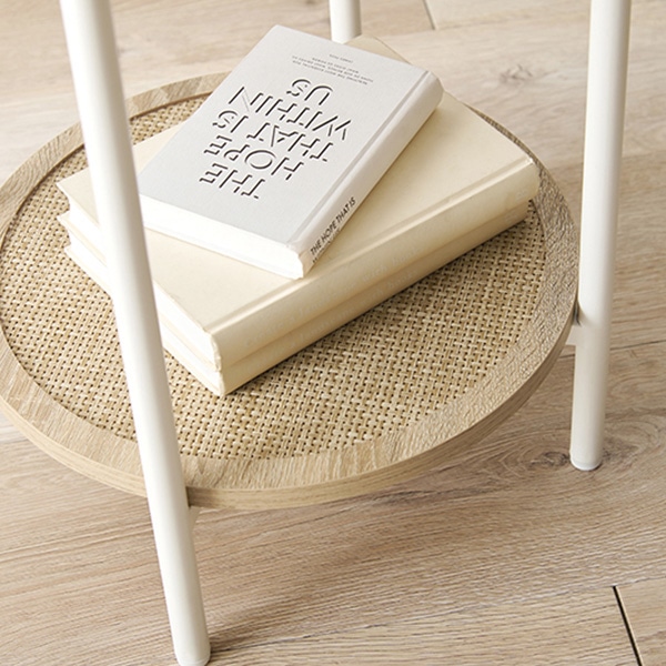 - ラタン調の編み目で仕上げた棚板がアクセントとなった、おしゃれなサイドテーブル。●アジャスター付●組立式