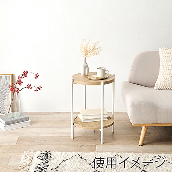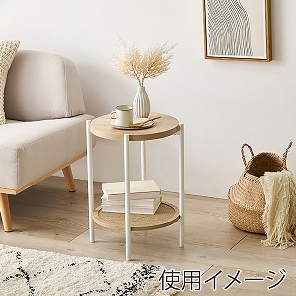 萩原 ラタン調サイドテーブル ナチュラル×ホワイト KST-3172NW 1台(ご注文単位1台)【直送品】