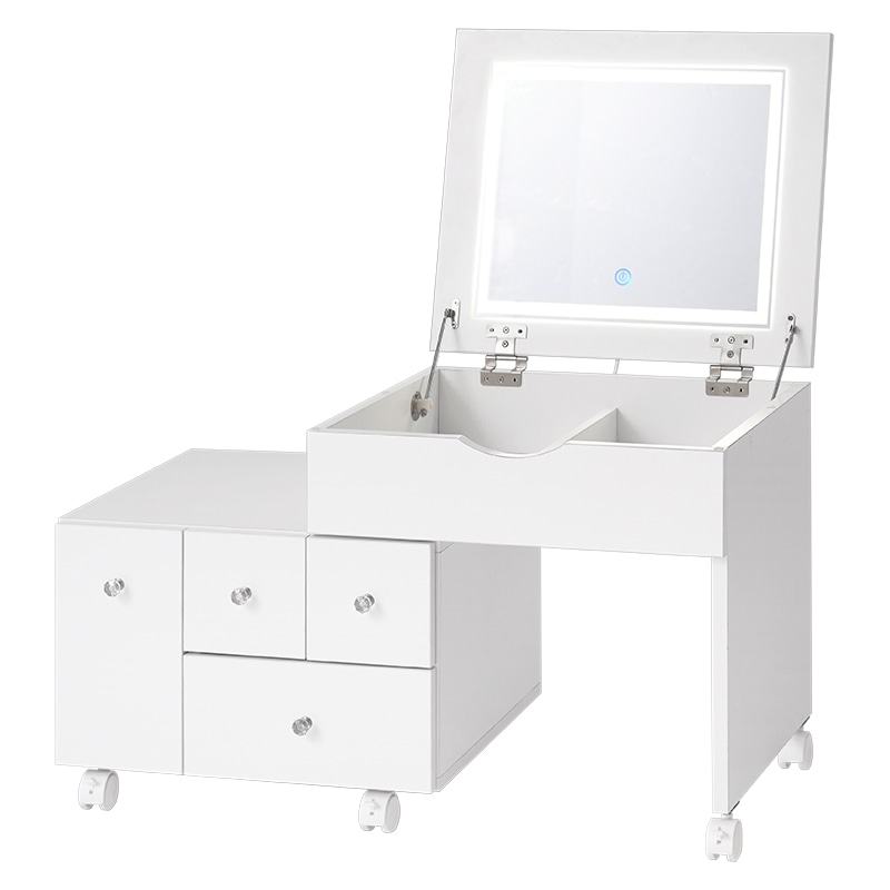 - LEDの女優ライト付きでメイク上手になれるコスメワゴン。大容量な収納に加え伸縮式なので、お部屋のレイアウトに合わせて幅が変えられます。●キャスター付●LEDライト付●組立式