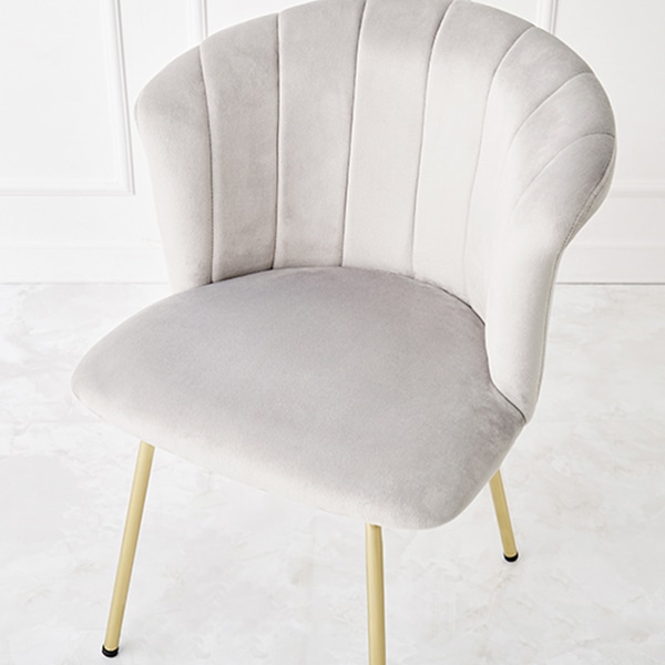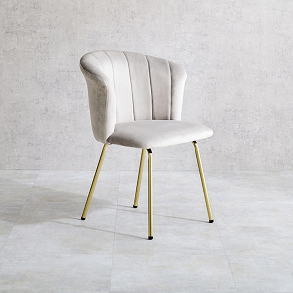 - 貝殻をモチーフにしたシェル型の背もたれと座面がオシャレなデザインのダイニングチェア。光沢があり高級感のあるベロア調生地にゴールドの脚を合わせました。背もたれのカーブが背中にフィットします。●組立式(工具付属)