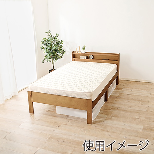 萩原 セミダブルベッド ポケットコイルマットレス付 宮棚2段 ライトブラウン MB-5406SD+KM-3102 1台(ご注文単位1台)【直送品】