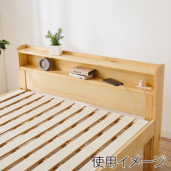 萩原 セミダブルベッド ポケットコイルマットレス付 宮棚2段 プレーンナチュラル MB-5406SD-NA+KM-3102 1台(ご注文単位1台)【直送品】