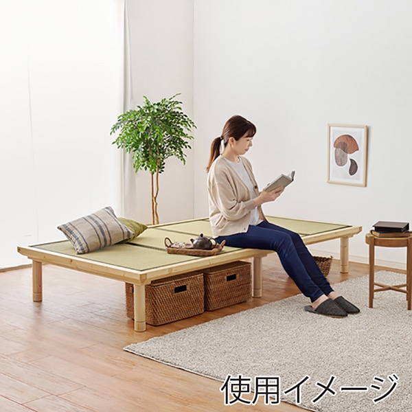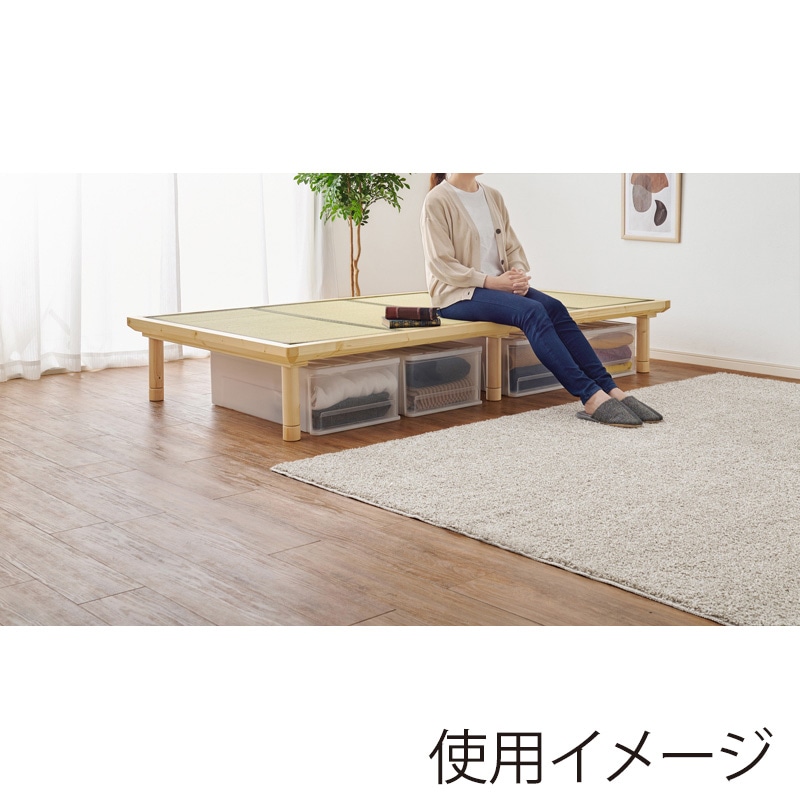 - 爽やかな天然い草を使用した畳マットをすのこベッドに合わせました。木製のフレームが温かみを感じさせ、畳はい草の自然な香りでリラックス効果も期待できます。畳は吸湿性に優れており、ジメジメした季節でも快適に過ごせます。また、高さを3段階に調節できるため、お部屋のスペースに合わせて最適な高さに設定可能。敷布団がそのまま使えるロングサイズです。●継脚付●組立式(工具付属)