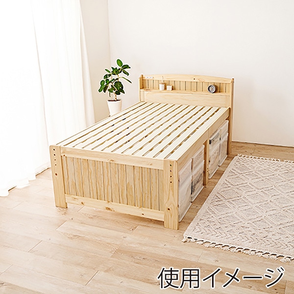 萩原 すのこベッド ポケットルコイルマットレス・宮棚付 セミダブル ナチュラル MB-5916SD-NA+KM-3102 1台(ご注文単位1台)【直送品】