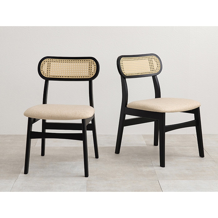 萩原 ラタン調ダイニングチェア 2脚セット ブラック FL-8654BK-2S 1セット(ご注文単位1セット)【直送品】