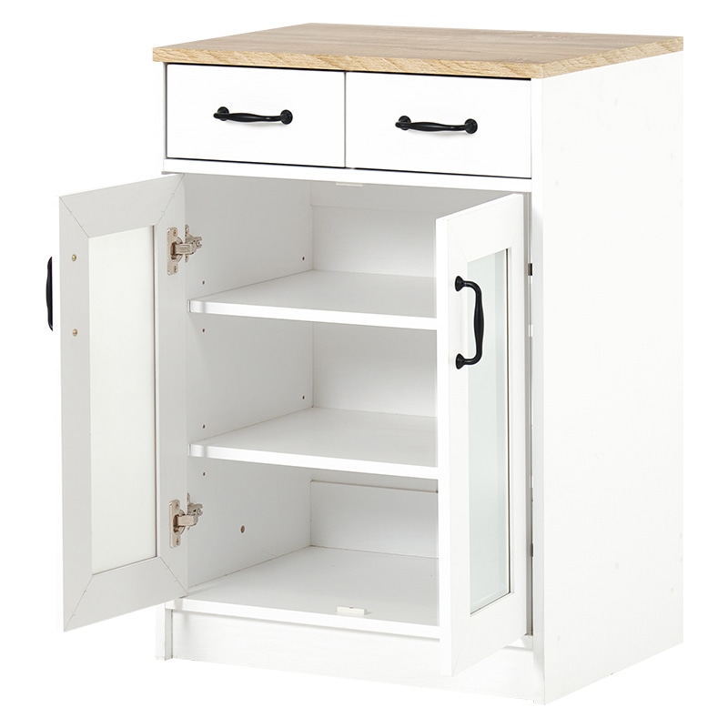 萩原 キッチンラック 幅58cm 扉収納タイプ ナチュラル×ホワイト RCC-1636WS 1台(ご注文単位1台)【直送品】