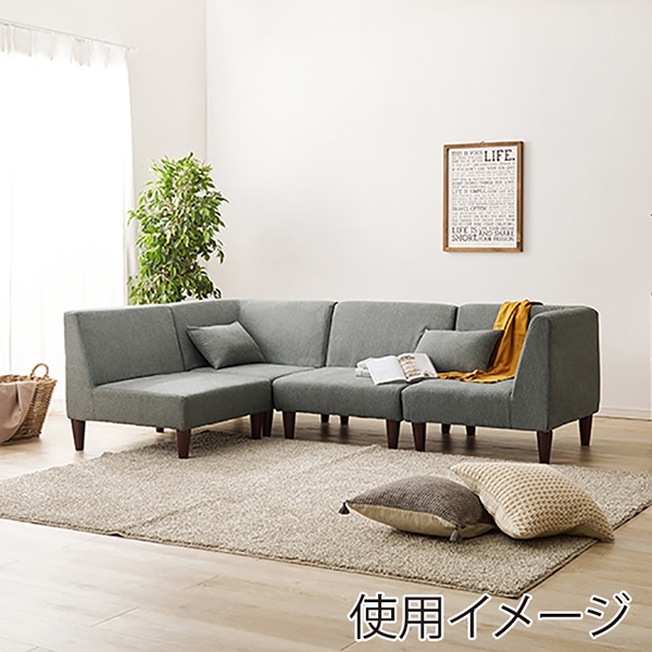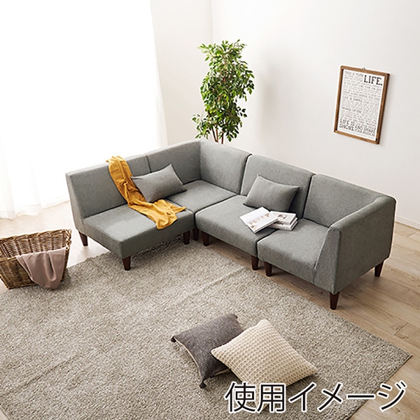 - 一人掛けソファ×2個とコーナーソファ×2個の4点セットで、組み替えて使えるユニットソファ。並べて2人掛けソファとして使うことはもちろん、L字に並べたり、間にテーブルを置いて映画館のように楽しむことも。広めな座面なのでゆったりとリラックスすることができます。弾力のある座り心地なので長時間座っても疲れにくく、食事や作業をする時にも向いています。シンプルなファブリックと深い色味の木脚なので高級感もあり、ナチュラルインテリアからモダン系まで幅広いインテリアに合わせることができます。●ソファ座面高:33cm(脚あり)/20cm(脚なし)●コーナーソファ:約幅71×奥行71×高さ66cm(脚あり)/53cm(脚なし)●座面高:33cm(脚あり)/20cm(脚なし)●脚部組立式(工具不要)