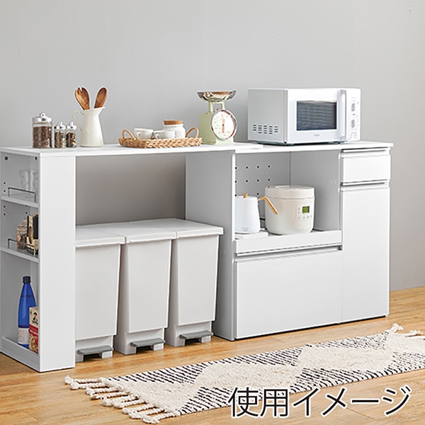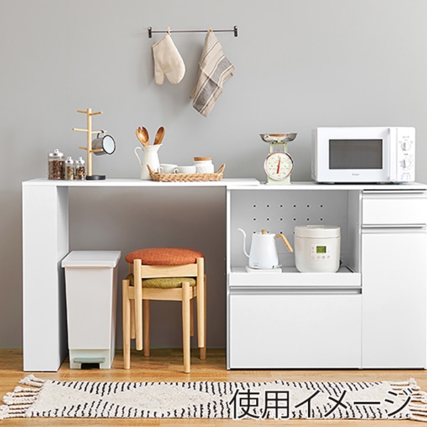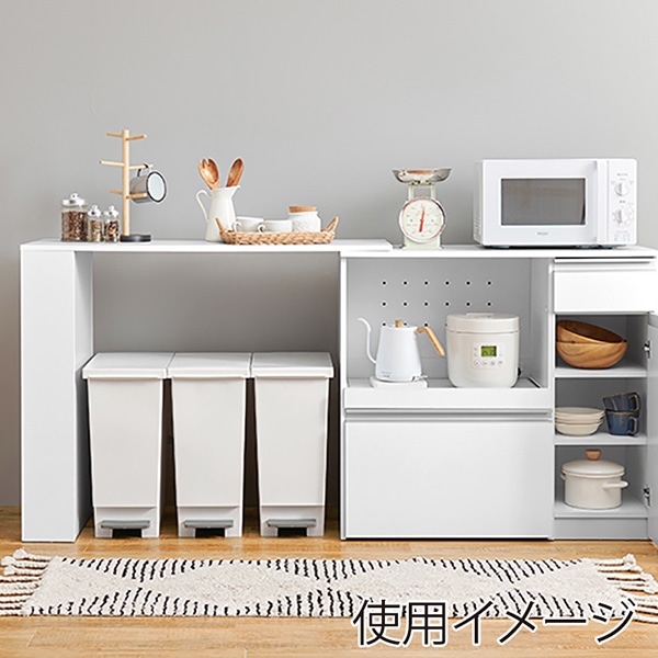 - お部屋の広さや収納するものに合わせて幅を調整できるカウンターキャビネット。キャスター付き収納庫タイプ。食器や調理器具、キッチン家電などがスッキリ片付く大容量収納。※プラスドライバー・ハンマーをご用意ください。●2口コンセント付●天板・スライド棚材質:合成樹脂化粧パーティクルボード●取手:スチール●組立式