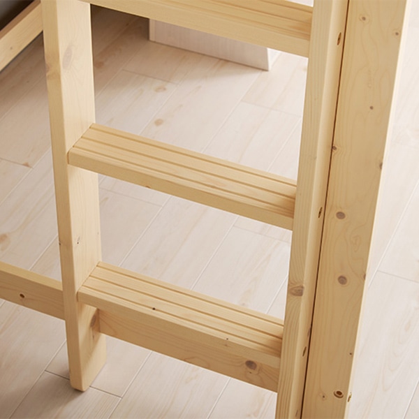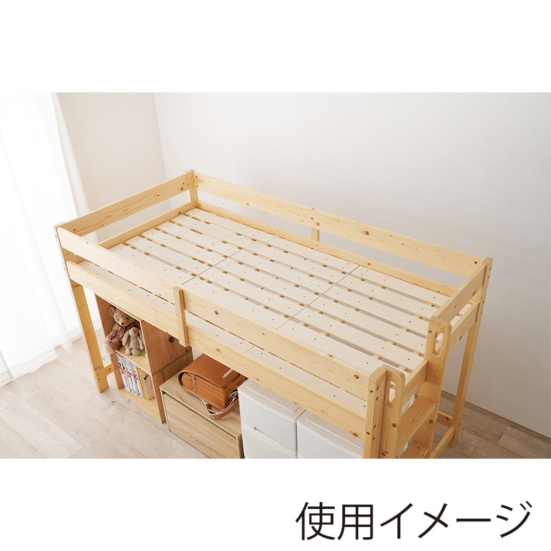 - 高さ120cmと低めなロフトベッド。薄型マットレス付。収納スペースの確保はもちろん、布団の上げ下げなどもラクに行っていただけます。床面下の収納も使いやすい省スペースな垂直のハシゴタイプです。ハシゴはお部屋の間取りに合わせて、4か所付け替え可能です。耐荷重250kgと、大人でも安心の頑丈設計。※仕様に合ったサイズのプラスドライバーとマイナスドライバーをご用意ください。●マットレス:約幅91×奥行195×高さ4cm●マットレス張地:ポリエステル●マットレス中材:固綿●組立式
