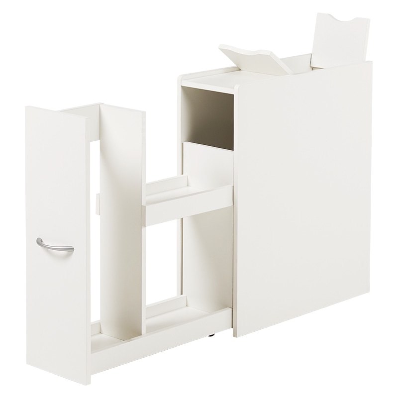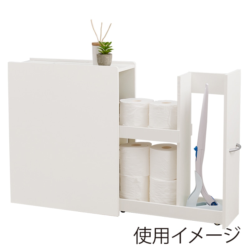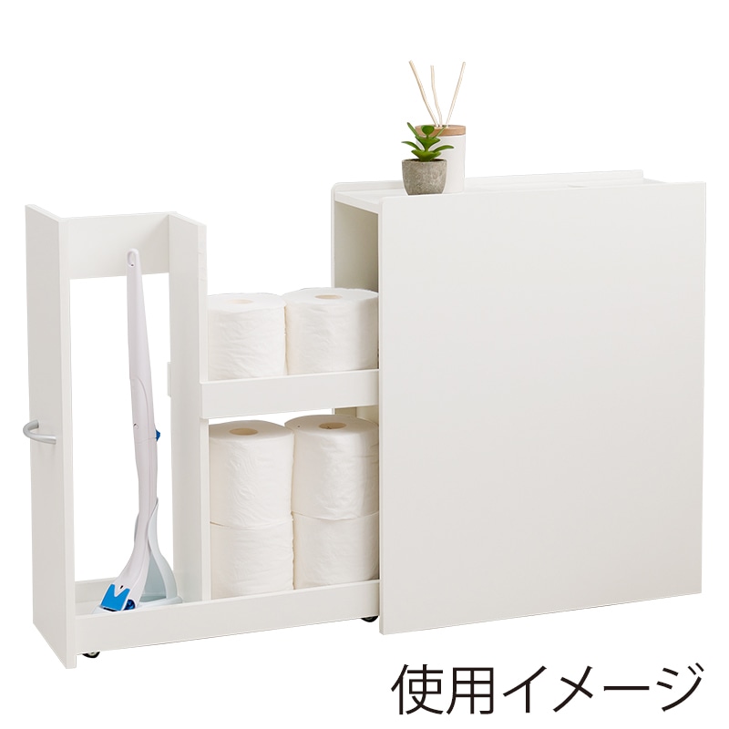 - 直径13cmの太巻きトイレットペーパーにも対応。スリムなのに掃除用具もスッキリ片付くトイレラック。●キャスター付●組立式