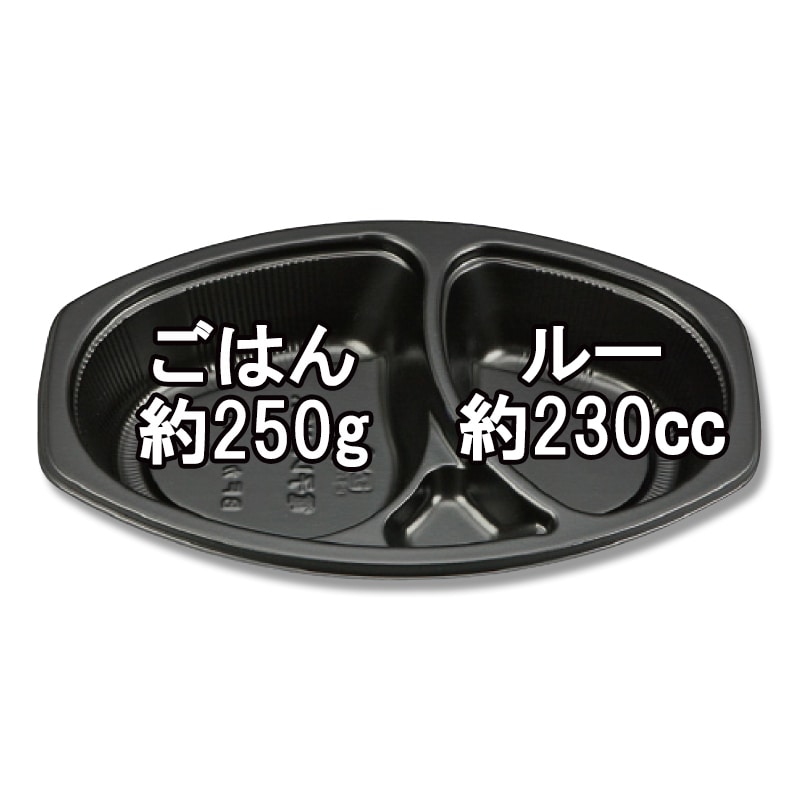 ごはん部分とルー部分が仕切れたタイプの便利なテイクアウト用カレー容器です。内嵌合蓋「シーピー化成 カレー容器 BFカレー内6 嵌合蓋U字穴 50枚」は別売です。●電子レンジ使用可●オーブン使用不可●耐油性:あり●耐熱温度:105℃●ごはんの容量:約250g/ルーの容量:約230cc●入数:50枚