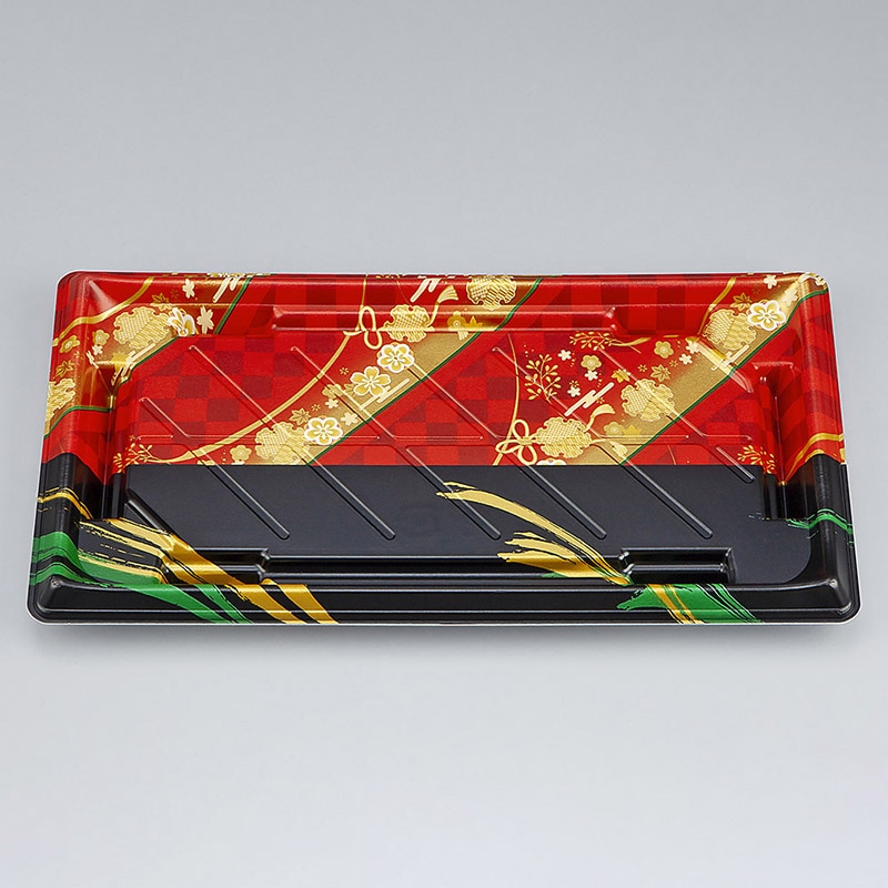 商品価値を底上げするスタイリッシュな寿司容器です。握り12貫向け。発泡素材を使用した、軽くてすっきりとした本体形状。盛付け目安ラインを設けることで作業効率UP。誰でも簡単に美しく盛付けることができます。右上・左下の目安ラインを凸リブにすることで食材の転がりを軽減します。外嵌合蓋「SF美角26嵌合蓋AP」は別売です。●電子レンジ使用不可●耐熱温度:85℃●入数:50枚