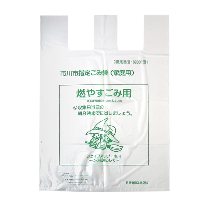 朝日樹脂工業 市川市指定家庭用ごみ袋 燃やすごみ用 Uタイプ 45L 10枚入 1束(ご注文単位50束)【直送品】