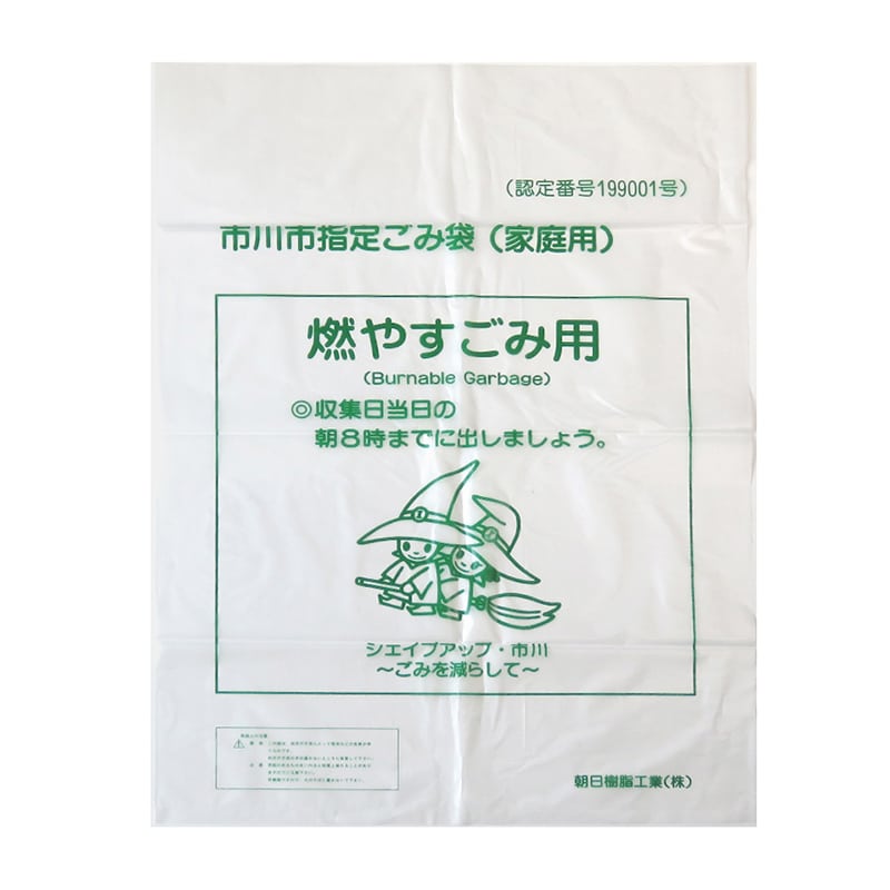 朝日樹脂工業 市川市指定家庭用ごみ袋 燃やすごみ用 平袋タイプ 30L 中 10枚入 1束(ご注文単位50束)【直送品】