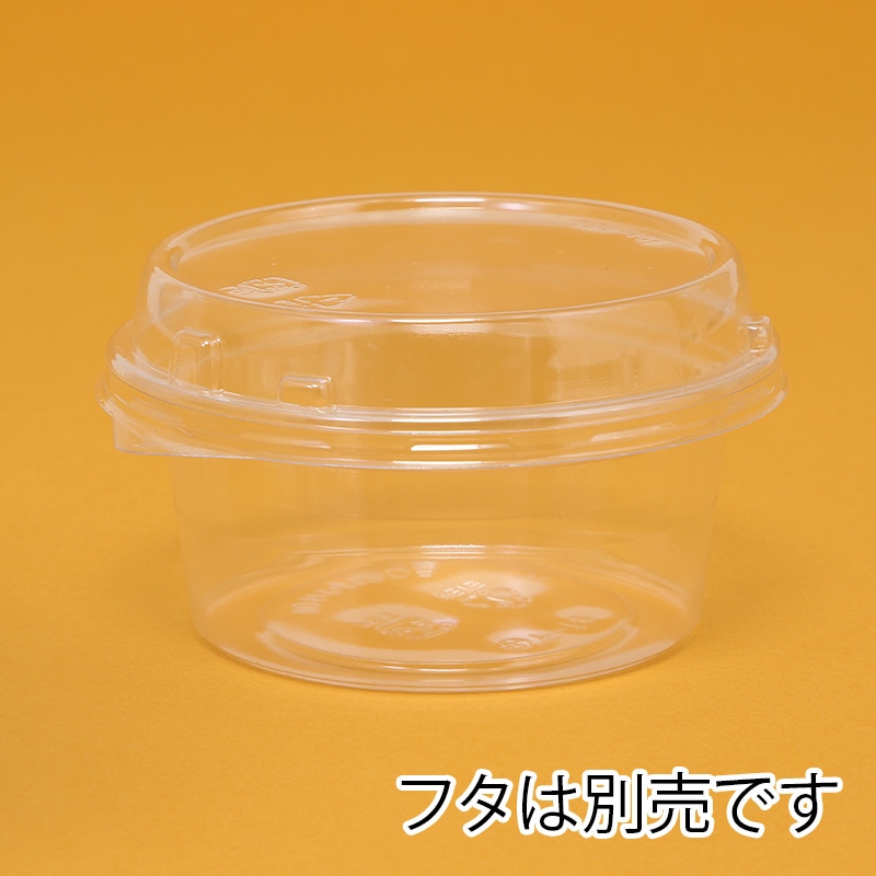 シンプルな形状で使いやすい透明丸カップです。お惣菜・サラダ・フルーツ・漬物などに。環境に配慮し、再生可能な生物資源を一部混合した、石化由来A-PETと植物由来バイオマス素材のハイブリッド容器です。熱シールはできません。蓋(101φ規格)は別売です。●満杯容量:239ml●首下容量:188ml●電子レンジ使用不可●オーブン使用不可●耐油性:あり●耐熱温度:60℃●入数:50枚