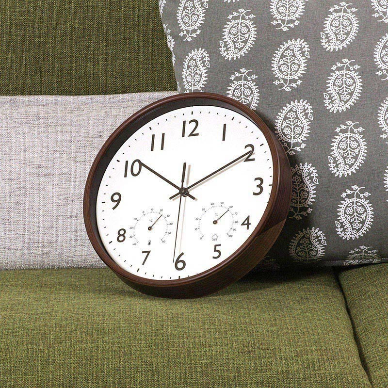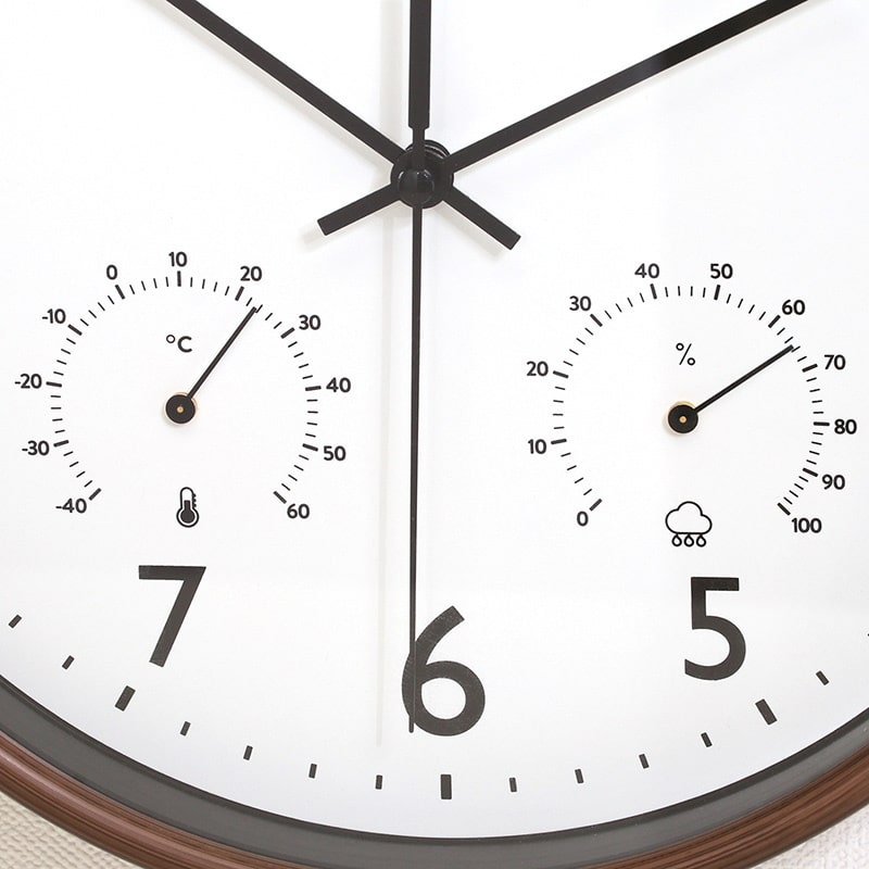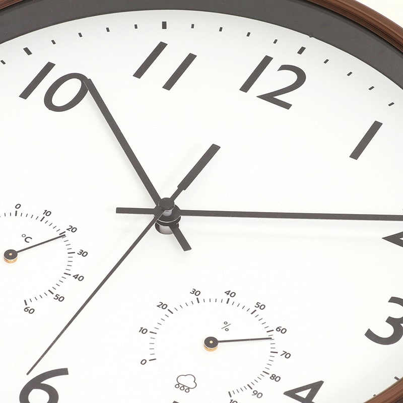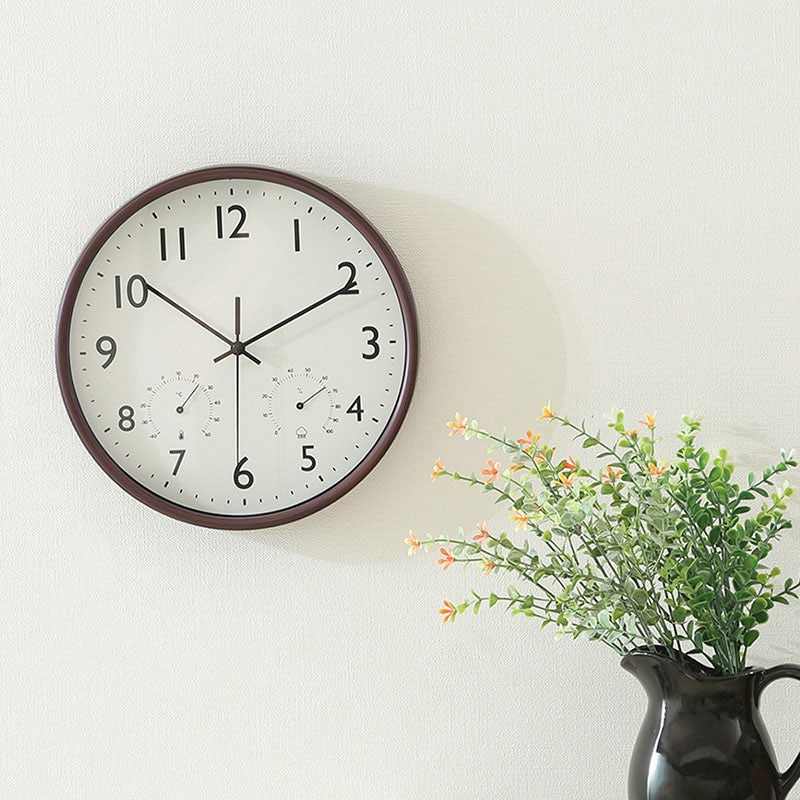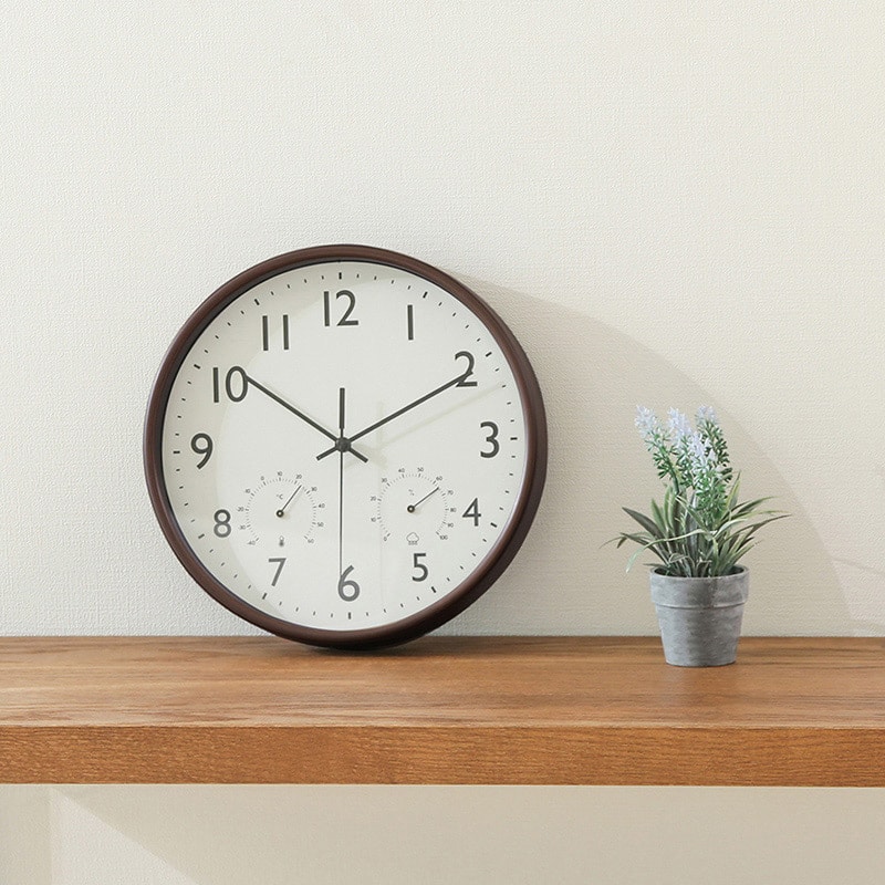 不二貿易 掛時計 温湿度計付 ミエル φ25cm ブラウン 28199 1個(ご注文単位1個)【直送品】