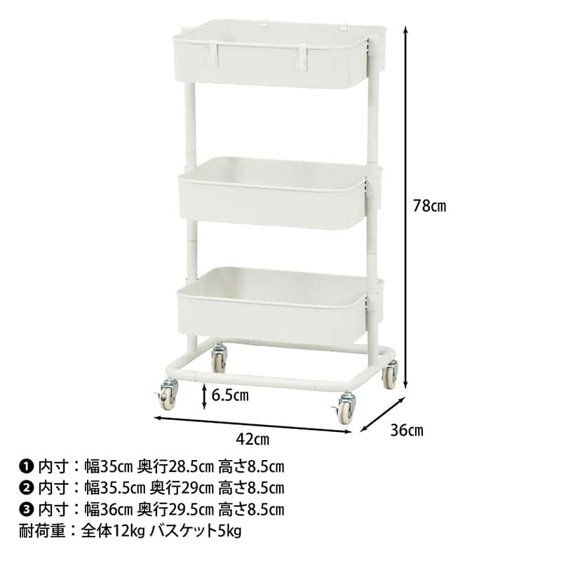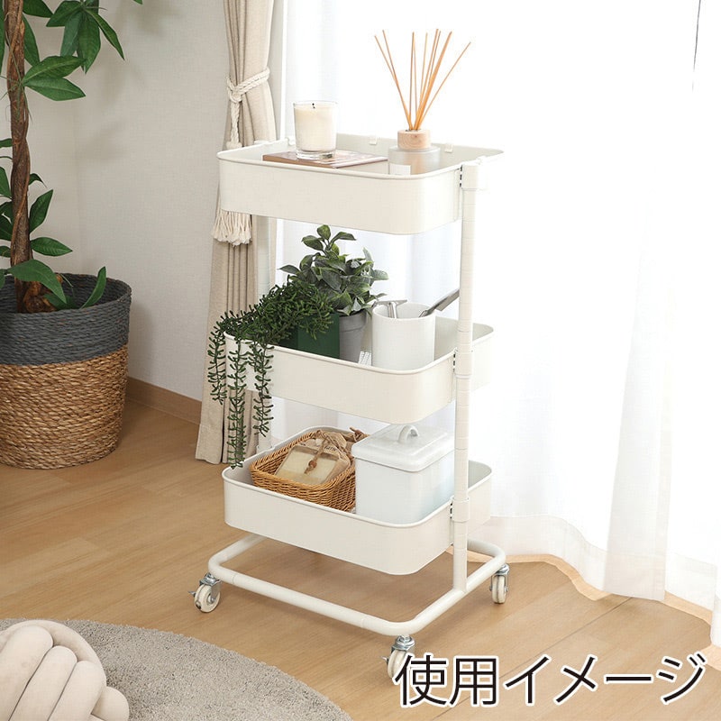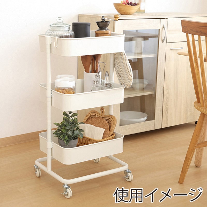 不二貿易 高さが調整できるワゴン マルシェ オフホワイト 45066 1台(ご注文単位1台)【直送品】