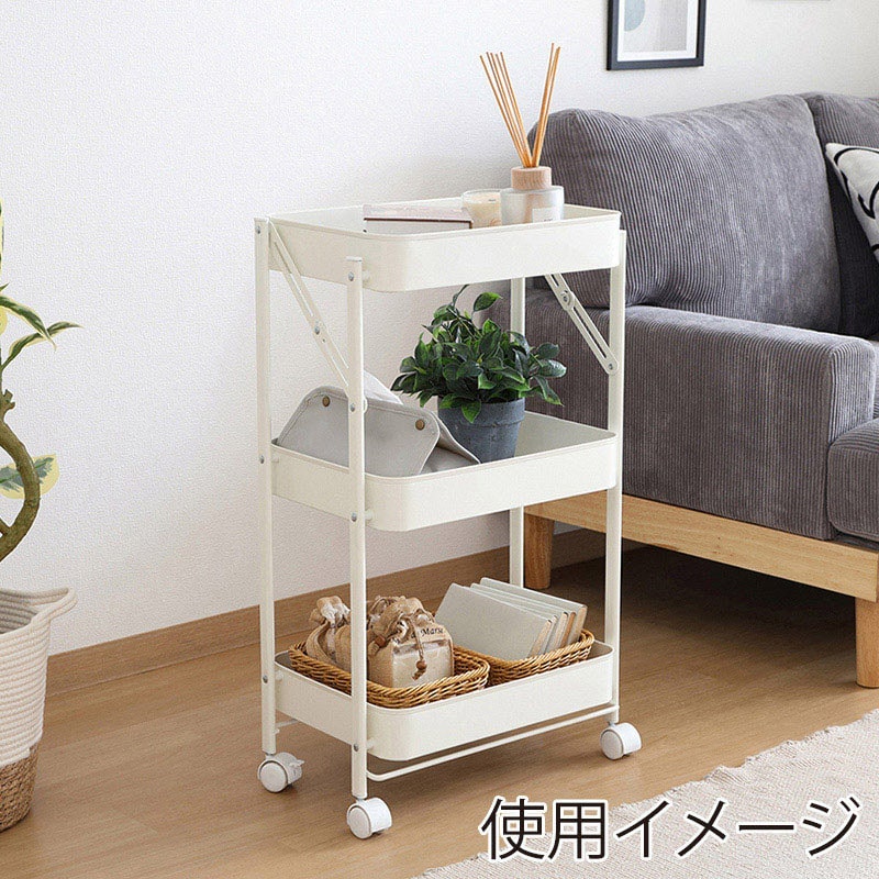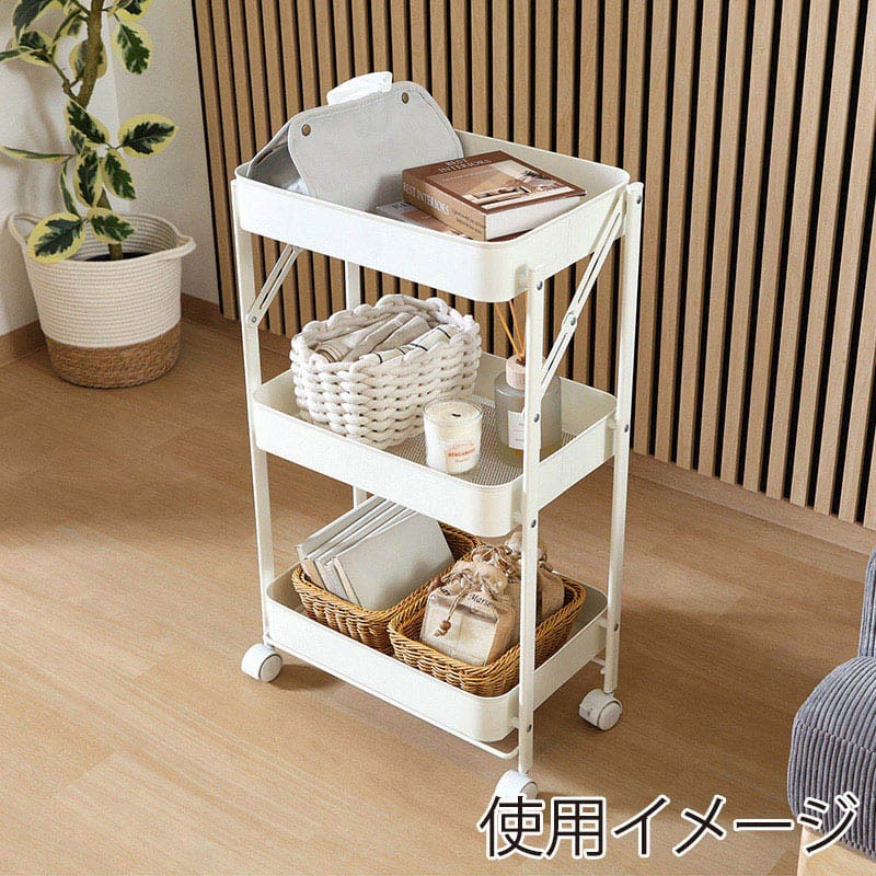 不二貿易 組立て楽な折畳めるワゴン スパーク オフホワイト 50614 1台(ご注文単位1台)【直送品】