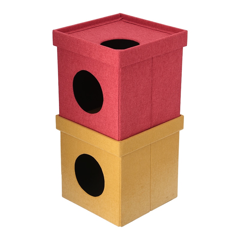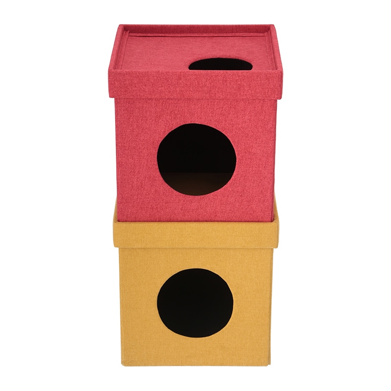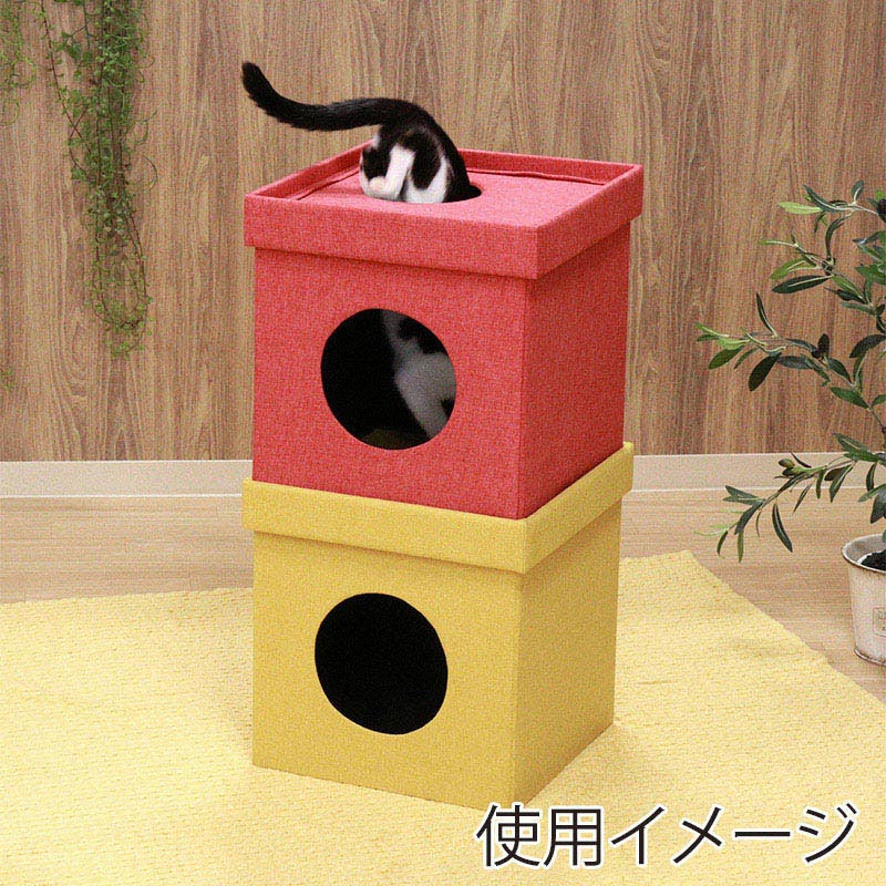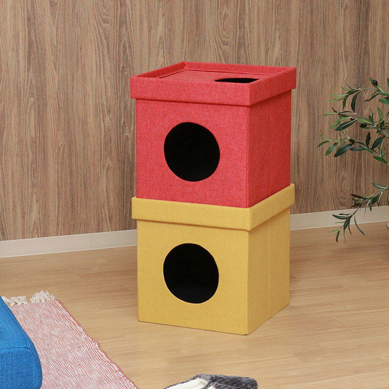 不二貿易 ペットハウスキューブ 2段 レッド/イエロー 1個(ご注文単位1個)【直送品】