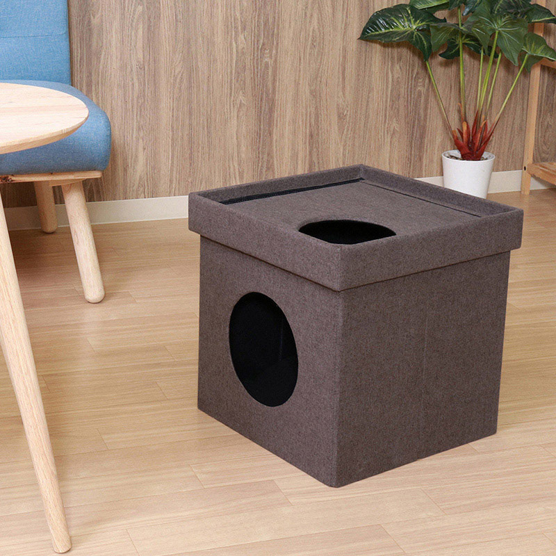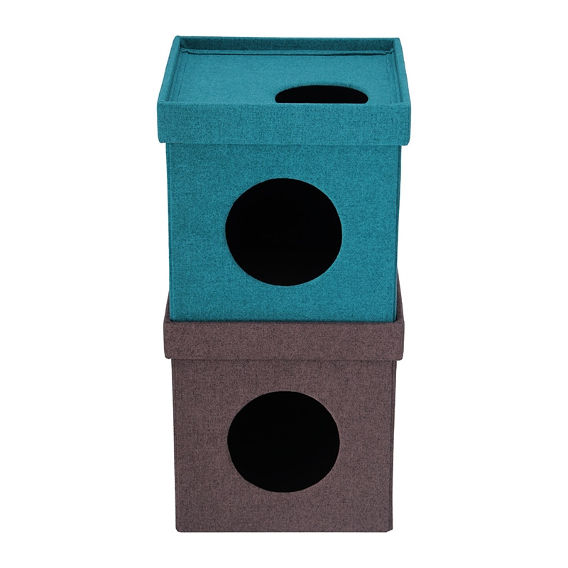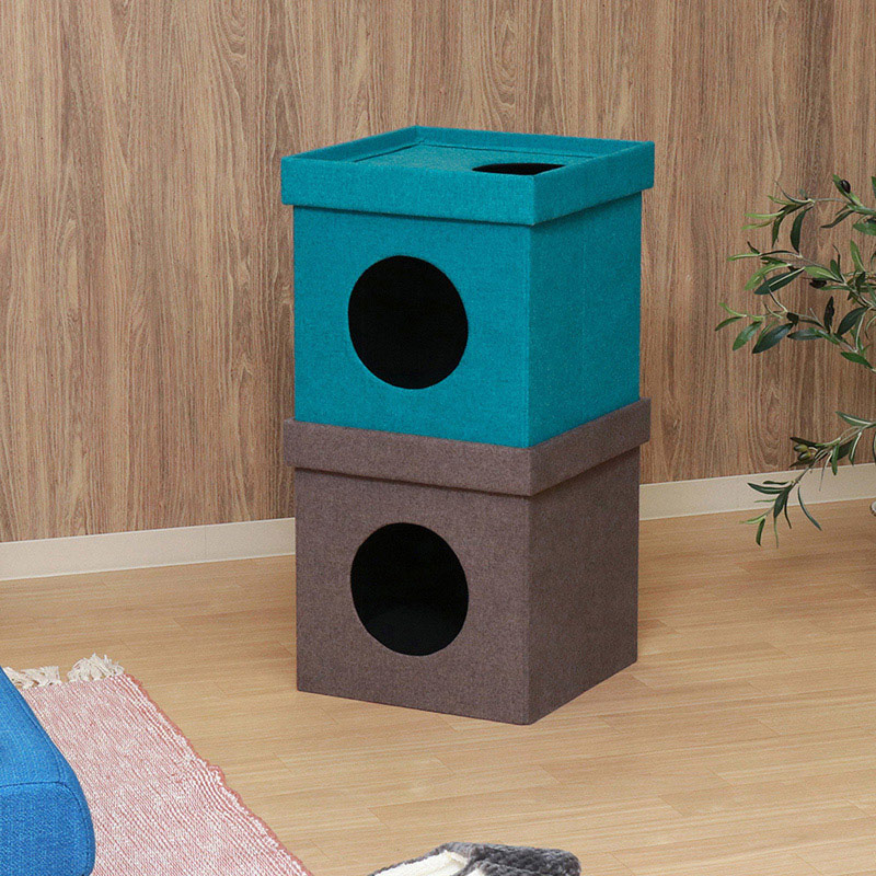 不二貿易 ペットハウスキューブ 2段 ブルー/ブラウン 1個(ご注文単位1個)【直送品】