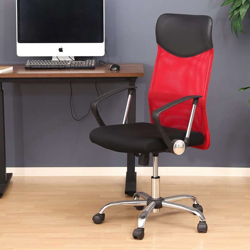 不二貿易 メッシュハイバックチェアー レッド HF-98RD 1台(ご注文単位1台)【直送品】
