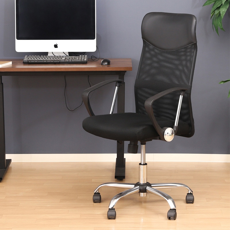 - メッシュ素材で圧迫感がなく、ヘッド部分や肘置きをブラックで引き締めたデザインです。ゆったり腕を預けられる取り外し可能なアームレスト付き。また取り付け位置を、内外で約1cm調整できます。シートハイ42~52cmの昇降機能付き。レバーの簡単な操作で高さを調整できます。また、ロッキング機能付きなので背もたれをお好きな角度で固定できます。ハイバックでゆっくりとリラックスしながら作業を行うことができます。また、腰の部分にはランバーサポートが入っているので腰への負担が軽減されます。クロムメッキでスタイリッシュな脚はちょっとした移動に便利なキャスター付き。背もたれはメッシュ素材で通気性に優れており、長時間座っていても快適です。●クッション材:ウレタンフォーム●重量:11kg●お客様組立品